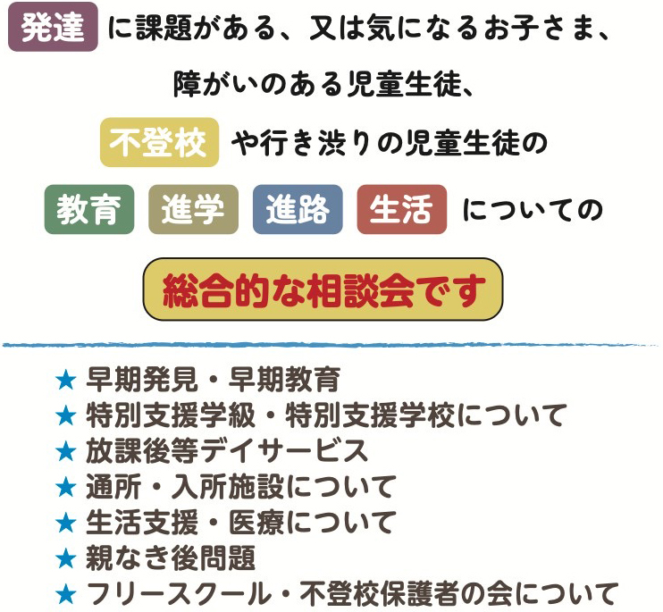 - 【ワンストップ相談】教育・進学・進路・就労・生活・親なき後問題など、様々な専門家への個別相談