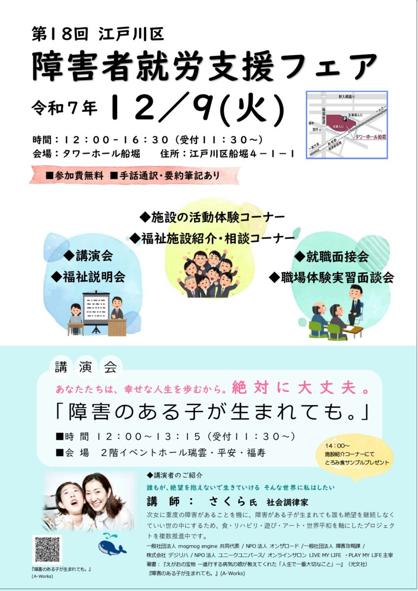 「第18回江戸川区障害者就労支援フェア 2025年12月9日(火曜日)12時00分〜16時30分「らいおんはーと」がブース出展します」