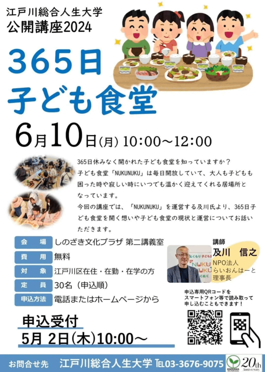 江戸川総合人生大学 公開講座2024年6月10日(月)「365日 子ども食堂」