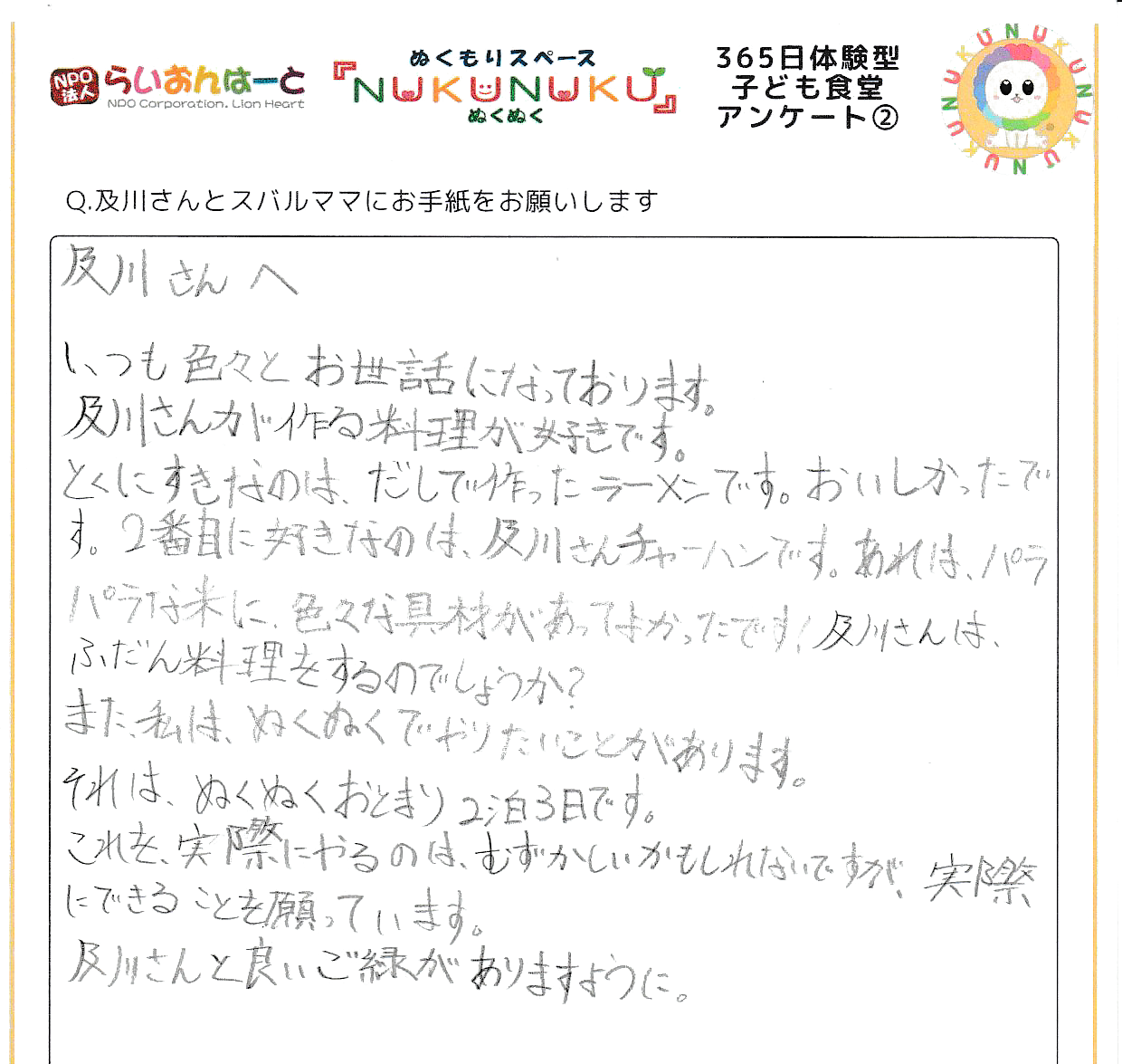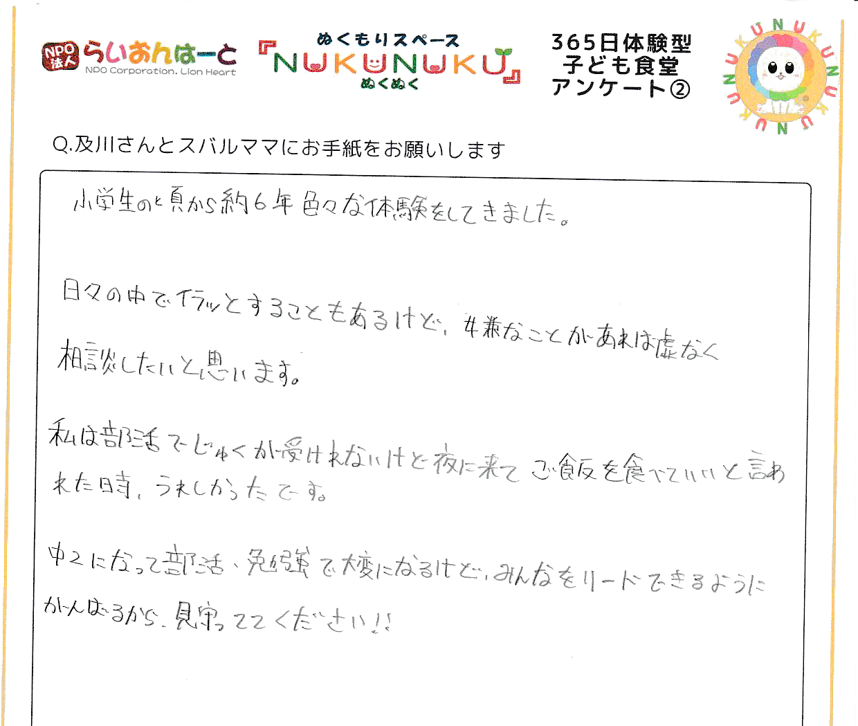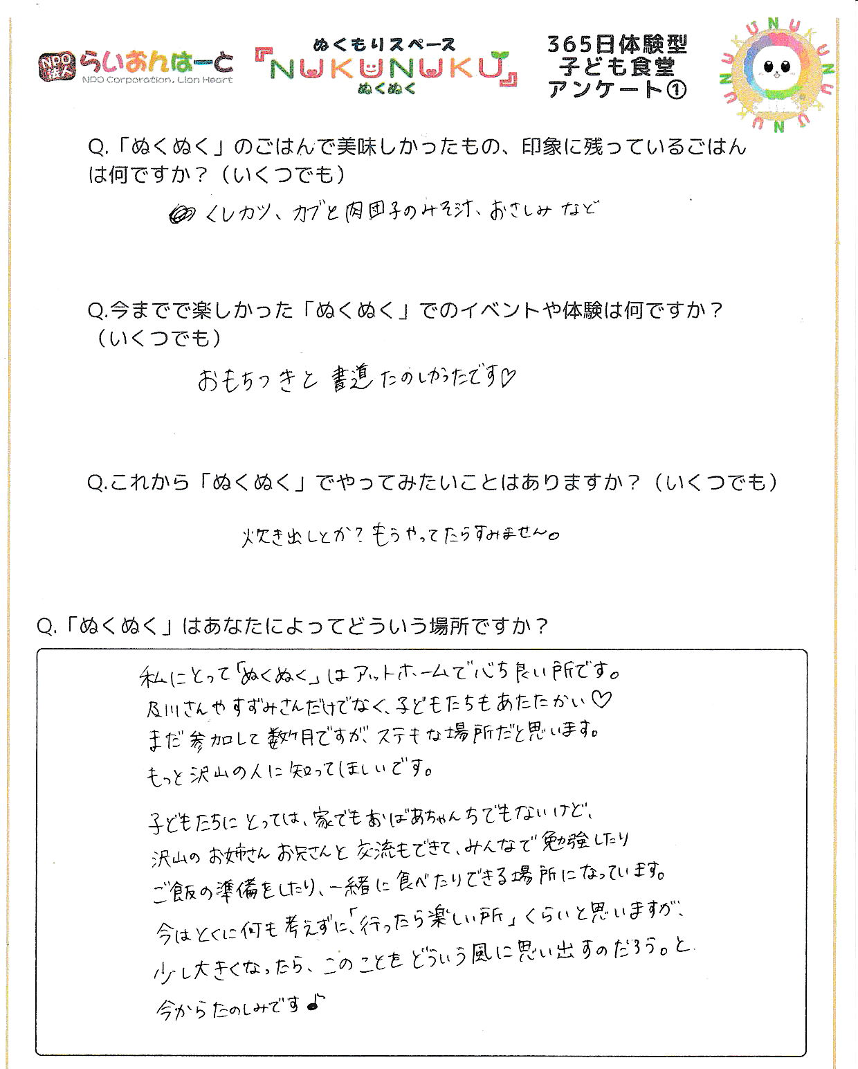 『ぬくぬく』インタビュー vol.2 佐藤すずみさん(40代) 産前産後うつを乗り越えて 〜利用者から運営へ! みんなで子どもを育てる 環境づくり〜今回は3年ボランティアとして関わり、2023年7月から正式にらいおんはーとのスタッフとして働くようになった、一児のシングルマザー佐藤すずみさん(40代)のお話です。