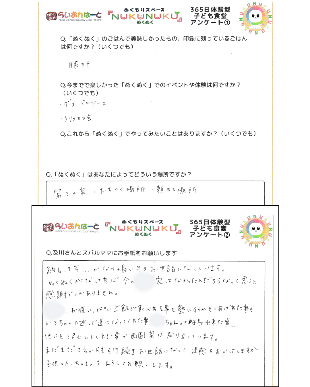『ぬくぬく』インタビュー vol.1 川島 裕香さん(仮名・40代) 幸せを掴んだ元シングルマザー今回は、フードパントリーとこども食堂を利用されている川島 裕香さん(仮名・40代)にお話をお聞きしました。